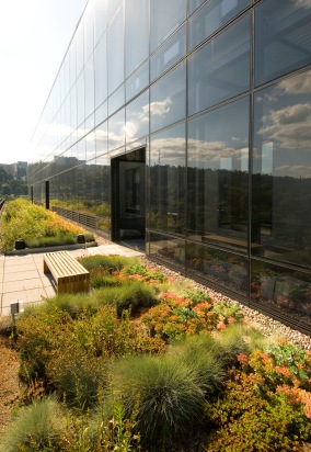 As NAU has proven, time-tested passive solar designs are as good today as they were decades ago, and many can be combined with other systems to afford complementary benefits. OHSU (Portland, Oregon), for instance, recently (2006) completed their Center for Health & Healing. It was designed with a giant (6,000 square foot) solar air heater on the south-side facade on the 15th and 16th floors that captures solar energy which is then translated into heat and held between two glass skins. The warm air is then circulated in an air-to-water heat exchanger via fans to heat the water used for the building (for lavatories, medical sinks, showers, and the cafeteria).