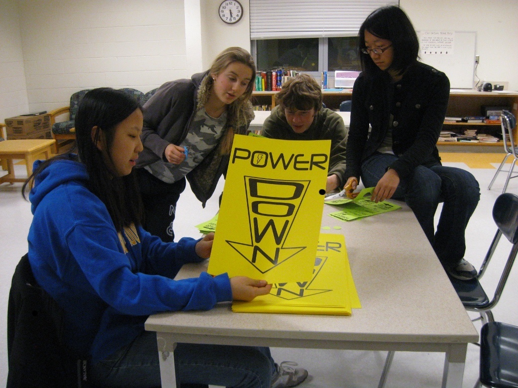 The program provides tremendous links across curricula in writing skills, sciences, math, the arts and more. Students are using an infrared camera to see and diagnose wasted energy. Others met with a faculty member from the English department about crafting an effective mission statement. And seventy-five of our art students created original pieces to go around light switches to encourage people to turn off lights – art as a medium of communicating.